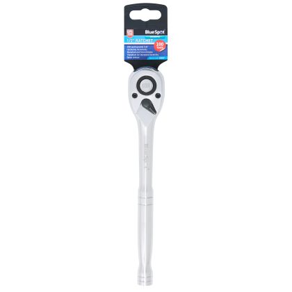 The Blue Spot Tools 1/2″ Ratchet (100 Teeth) is manufactured from heat treated carbon steel, with a chrome molybdenum ratchet head for increased durability. The 100 teeth provide 3.6° ratcheting increments making it ideal for use in tight spaces.Manufactured from heat treated carbon steel for increased durabilityChrome molybdenum ratchet head100 teeth provide 3.6° ratcheting incrementsQuick release