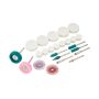 Ideal for use with most rotary tools. Includes a range of essential rotary tool polishing and grinding accessories.