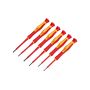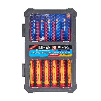 The Blue Spot Tools 6 PCE VDE precision screwdriver set is manufactured from S2 steel for increased durability with ergonomic TPE handles, which provides additional user comfort and is insulated to withstand up to 1000 volts.